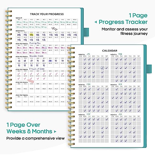 Fitness Workout Journal for Women & Men, A5(5.5″ x 8.2″) Workout Log Book Planner for Tracking, Progress, and Achieving Your Wellness Goals-Blue